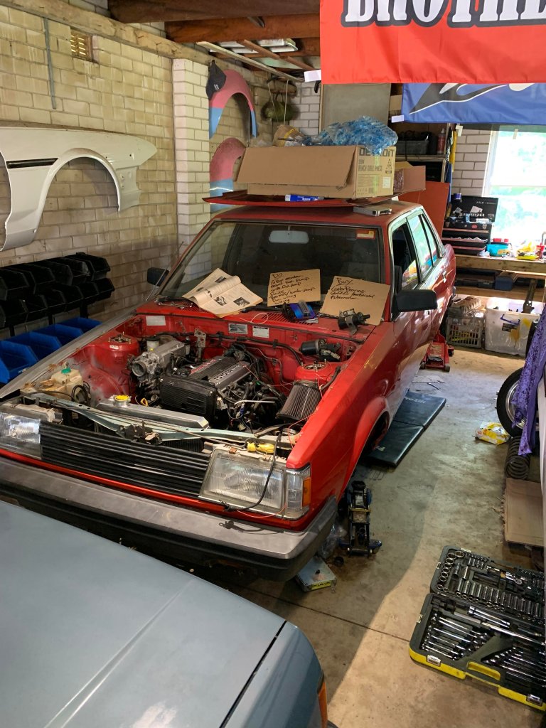 With Halfway hangs/the get down soon approaching, something like 48 days, the anxiety is real. But even though a deadline is dooming, this car will be finished, Kevs been spending hours after work, on the weekends and its great to see. In terms of what’s left, today was a big tick off the list, being a j160 it needs a custom mount as there isn’t anything off the shelf. With that being done, it leaves the car needing wiring, mount and wire a fuel pump, centre bearing, fluids and I’m sure some other small things, it should be done